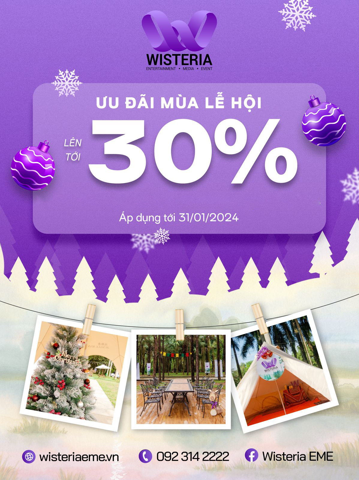 Chào mừng mùa Giáng sinh và năm mới sắp tới! Wisteria xin gửi đến quý khách hàng chương trình ưu đãi hấp dẫn sau đây: